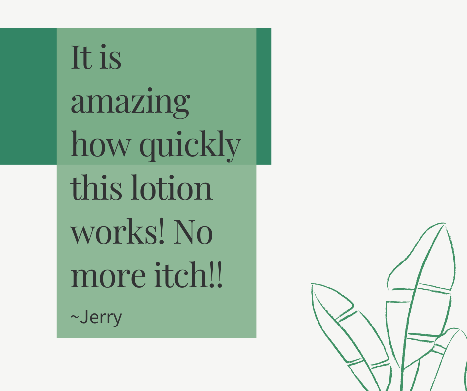 Our lotion provides relief from mosquito and black fly bites, poison ivy and other seasonal irritations.