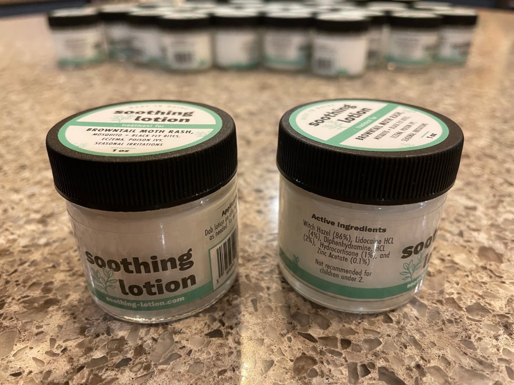 Browntail Moth rash, and bites from Mosquitoes and Black Flies are itchy and uncomfortable; our soothing lotion helps to provide relief.
