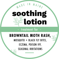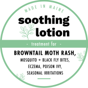 Browntail Moth rash, and bites from Mosquitoes and Black Flies are itchy and uncomfortable; our soothing lotion helps to provide relief.